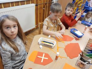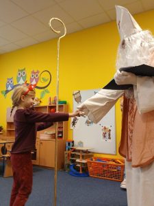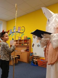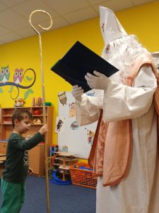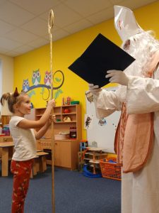 Tento týden jsme si s dětmi začali povídat o na významu Adventu a adventního kalendáře. Děti za pomocí domečků odpočítávají dny zbývající do Vánoc. Ještě před Ježíškem nás ve školce navštívil Mikuláš, který dětem připomněl nějaké ty hříchy a podáním ruky Mikuláši děti slíbily, že se pokusí napravit. Naštěstí nebyly hříchy tak veliké, aby musel zasáhnout čert. Za odvahu děti obdržely od Mikuláše balíček dobrot. Děti si napsaly Dopis pro Ježíška, na kterém si nakreslily ještě některá svá přání.