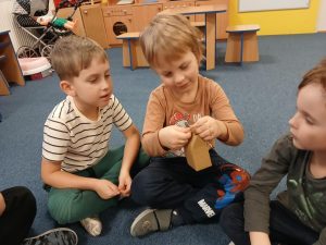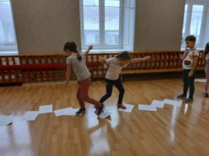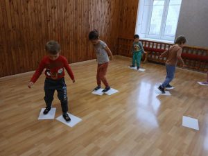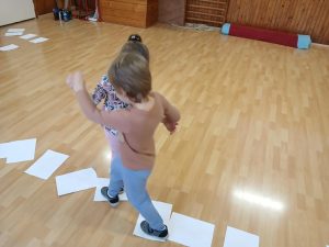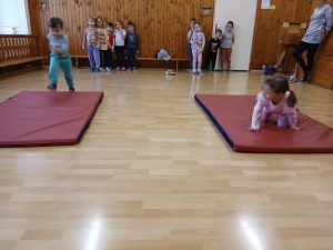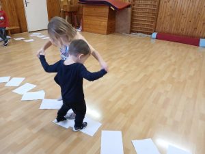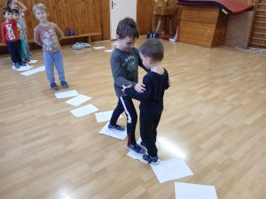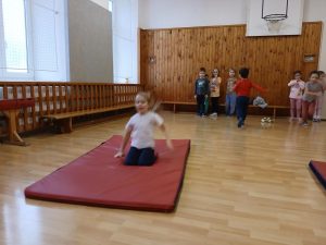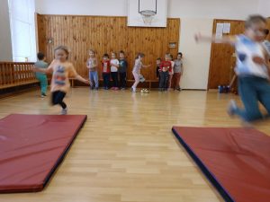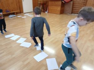 Zimní hrátky v tělocvičně – zaměřili jsme se na koordinaci pohybů, kooperaci mezi dětmi, orientaci v prostoru