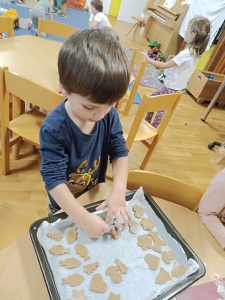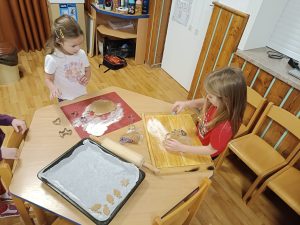 Pečeme perníčky – seznámení s jednotlivými surovinami, vyvalování těsta, vykrajování tvarů (nácvik praktických dovedností)