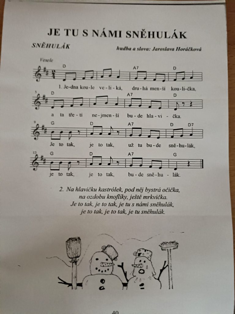 z nebe na zem právě letí.        (napodobujeme sníh)